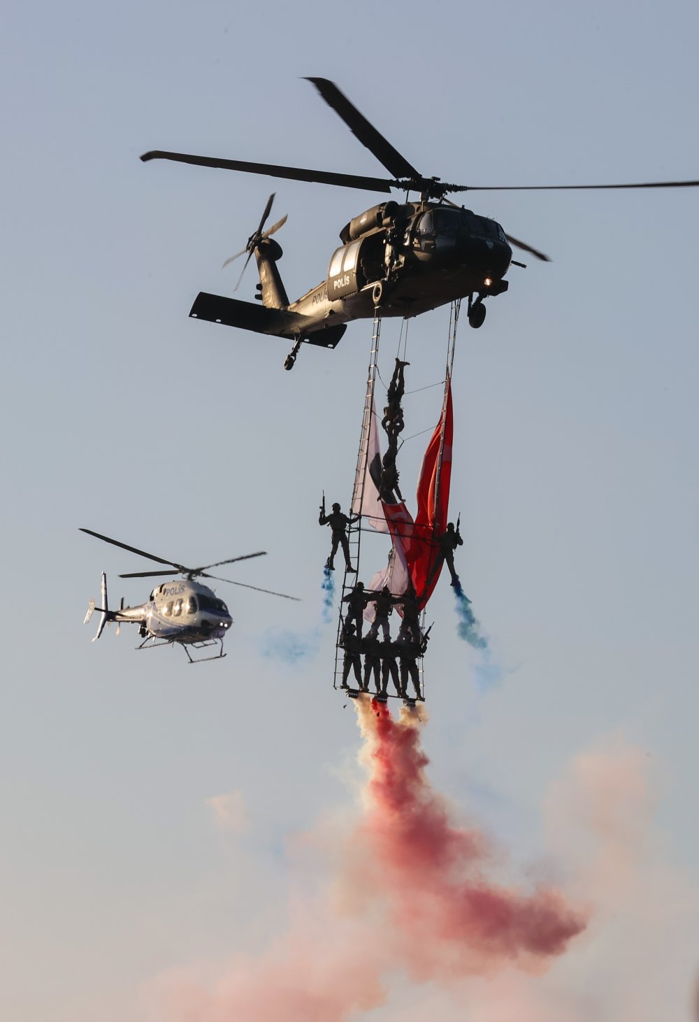Jandarma Genel Komutanlığına bağlı helikopterler de dünkü programda sahnelediği havada zeybek gösterisini yineledi.