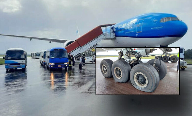 Hollandalı KLM’in Amsterdam- Paramaribo seferini gerçekleştiren Boeing 777 tipi uçağı, Paramaribo’da lastik patlattı.