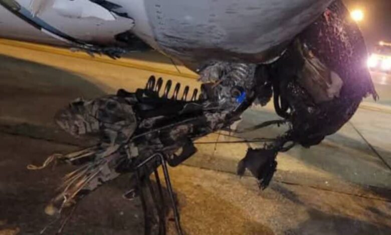 Çarpışma sonucu motosiklette bulunan iki kişinin hayatını kaybettiği bildirilirken, uçağın ise dönüş seferinden çekilerek bakıma alındığı açıklandı.