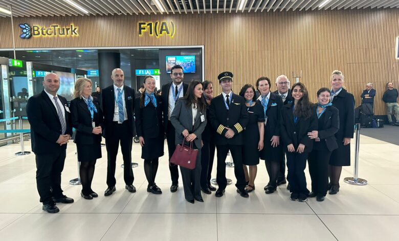 Ardından yolcular ve uçuş ekibi, İGA ve yer hizmetleri tarafından çiçeklerle karşılandı. F1 kapısında pasta ve kurdele kesimi töreni yapıldı.