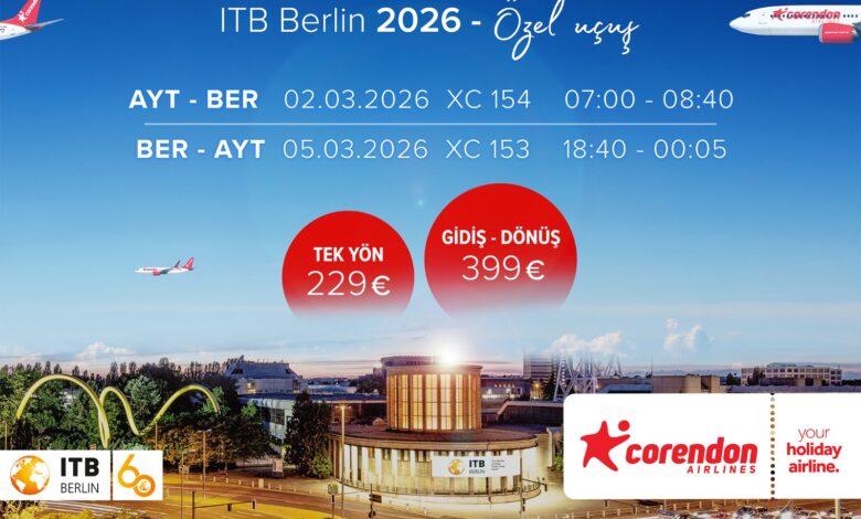Dünya turizm sektörünün en prestijli buluşmalarından ITB Berlin 2026 için geri sayım başlarken, Corendon Airlines fuar katılımcılarına özel bir uçuş programı sunuyor.