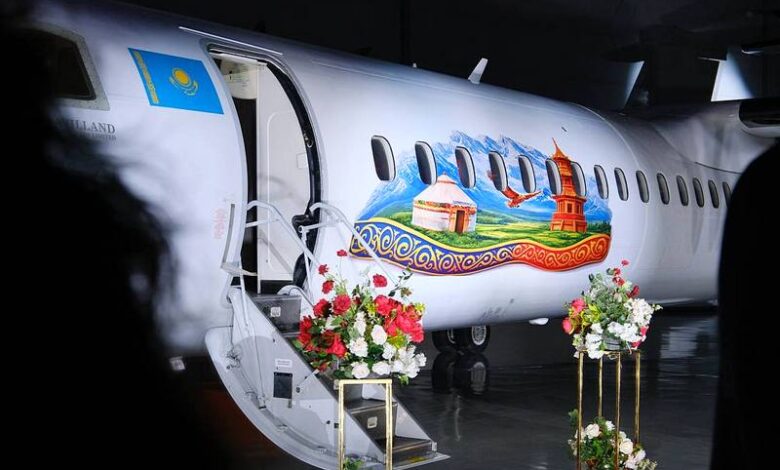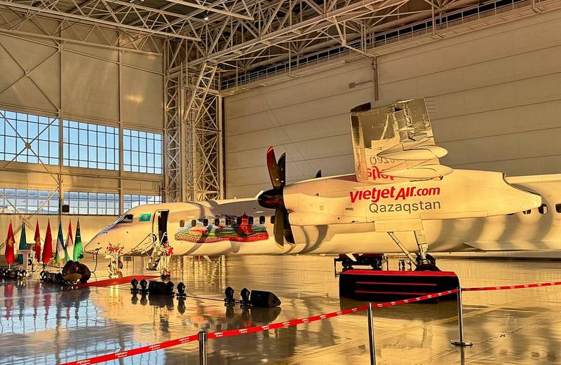 Astana Havalimanı’nda düzenlenen etkinlikte, havayolunun bölgesel filosundan bir DHC Dash 8 Q-400 turboprop uçağı, Vietjet Qazaqstan’ın canlı ve dikkat çekici yeni boyamasıyla sergilendi. Bu boyama, grubun karakteristik kırmızı-sarı tonlarını ve dinamik tasarımını yansıtıyor.