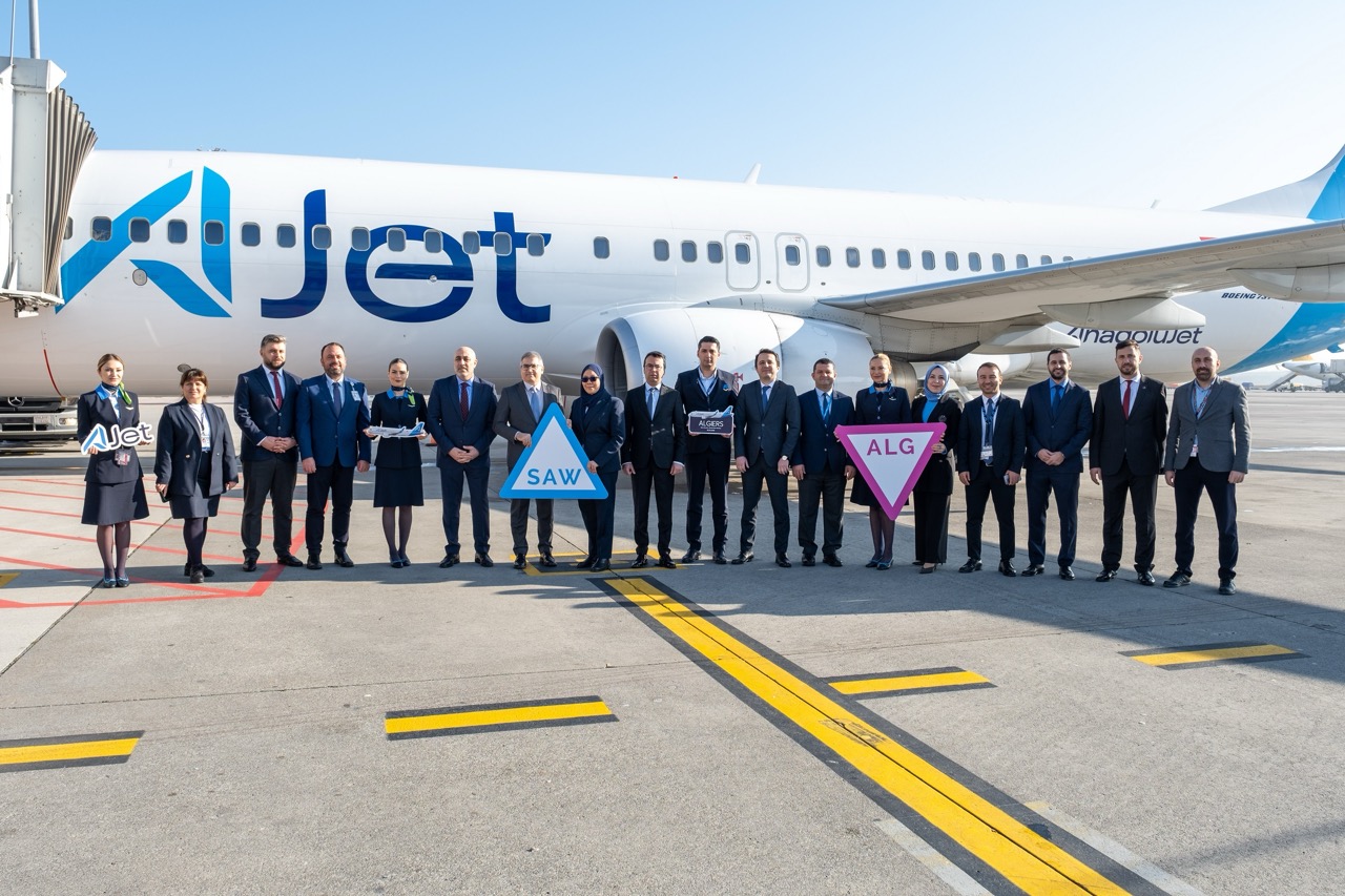 AJet’in, Cezayir’e ilk uçuşu öncesinde, Sabiha Gökçen Havalimanı’nda düzenlenen törene, AJet yöneticileri ve havalimanı üst yönetimi katıldı.