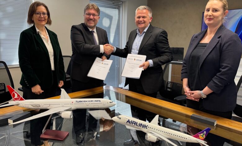 Türk Hava Yolları, Afrika kıtasındaki varlığını güçlendirmek amacıyla Güney Afrika merkezli Airlink ile kapsamlı bir kod paylaşım anlaşmasına imza attı. 1 Ağustos 2025 tarihinde yürürlüğe girecek olan anlaşmanın imza töreni, Airlink’in Johannesburg’taki Genel Yönetim Merkezi’nde, her iki şirketin üst düzey yöneticilerinin katılımıyla gerçekleştirildi.
