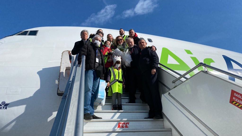 Boeing 747-400F tipi uçakla son seferini yapan Seyhan Kaptan’ı inişte ailesi karşıladı.
