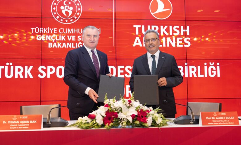 Türk Hava Yolları ile Gençlik ve Spor Bakanlığı arasında “Türk Sporuna Destek” iş birliği protokolü imzalandı. Türk Hava Yolları Genel Müdürlük binasında gerçekleşen imza törenine, Gençlik ve Spor Bakanı Dr. Osman Aşkın Bak, Türk Hava Yolları Yönetim Kurulu ve İcra Komitesi Başkanı Prof. Dr. Ahmet Bolat, bakanlığa bağlı 63 federasyonun başkan ve yöneticileri ile Türk Hava Yolları üst yönetimi katıldı.