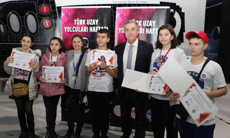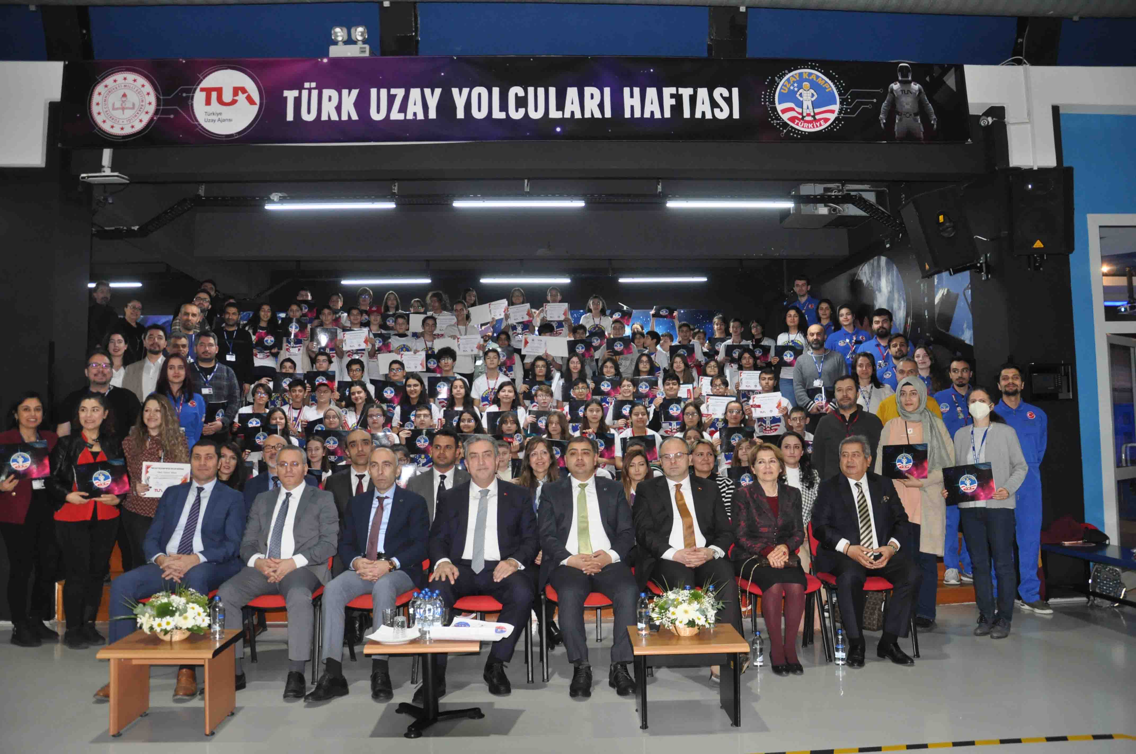 Konuşmaların ardından Türk Uzay Yolcuları Programı’nı başarıyla tamamlayan öğrenciler mezuniyet sertifikalarını alırken, “Uçuş Görevi”, “Uzay Yarışması”, “Su Roketi” görevlerinde başarılı olan takımlara da başarı ödülleri verildi.
