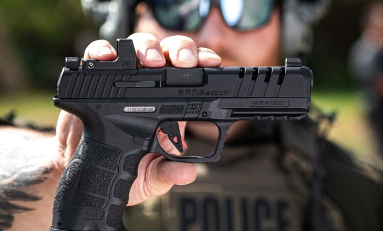 SAR9 SOCOM, 9 mm’lik tabanca, özel kuvvetlerin zorlu koşullardaki taleplerini karşılamak üzere tasarlanan ve dünyanın en titizlikle test edilen ateşli silahlarından biri olan SAR9’un DNA’sından üretildi. Geçtiğimiz hafta içinde görev tabancalarını teslim alan Teksas’taki Galveston polis departmanında görevli polis memurları, departman poligonunda silahları denedi.