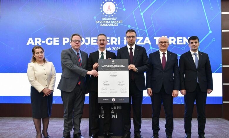 Savunma Sanayii Başkanlığı (SSB) koordinasyonunda düzenlenen törenle, savunma ve güvenlik teknolojileri alanında 14 yeni Ar-Ge projesinin sözleşmeleri imzalandı. Ağ destekli sistemlerden elektronik harbe, otonom hava-deniz sistemlerinden itki ve siber güvenlik alanına kadar farklı sektörler için geliştirilecek teknolojiler, ülkemiz savunma sanayiimizin yerli ve milliliğine katkı sunacak.