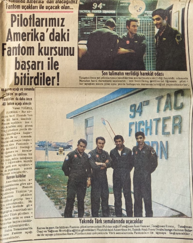 Bildiğiniz gibi o yıllarda, Türk Hava Kuvvetleri envanterinde bulunan ve uzun yıllar başarıyla kullanılan F-100 uçaklarının faydalı kullanım ömürleri dolmaya başlamıştı. Bu uçakların yerine, zamanının en modern harp uçağı olarak görülen F-4E Phantom uçakları seçildi. Phantom’ları uçurmayı öğrenecek ve sonrasında da öğretmenlik yapacak ilk 10 kişilik ekipte ben de vardım.