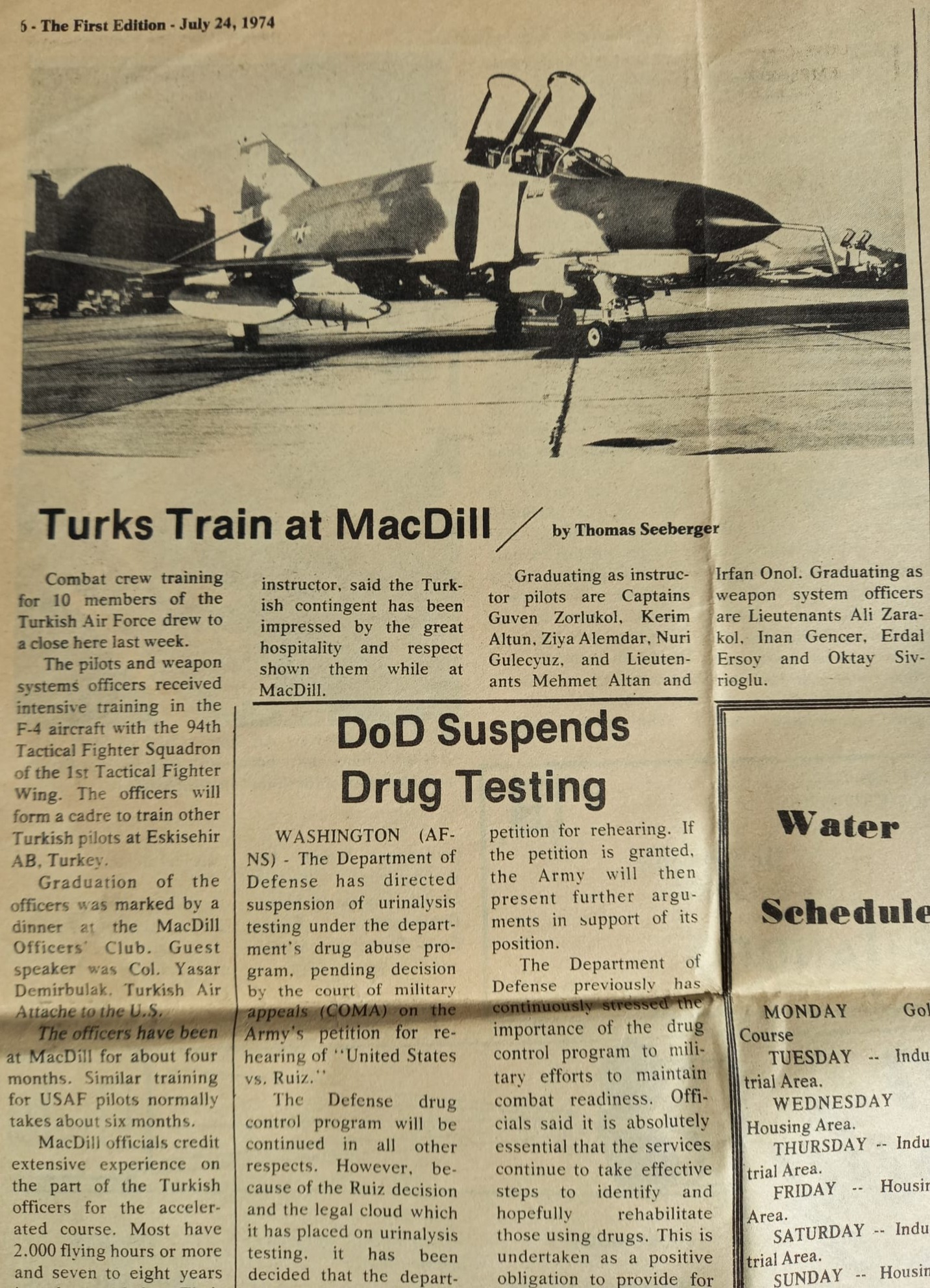 Bnb. Ergin Celasin (Filo Komutanı) ve Bnb. Zübeyir Batur (Filo Harekât Subayı), ilk F-4 filosunu kuracak pilotlardı. Onlara MacDill Hava Üssü’nde sadece F-4 intibak eğitimi verdiler. Bu yüzden ABD’de iki ay kadar kalıp Türkiye’ye döndüler. Bizim yurda dönüşümüz ise Ağustos’u buldu.