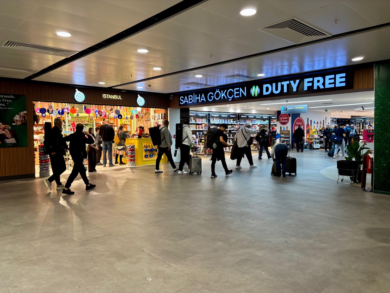 4 bin 364 metrekarelik geniş alanda, Sabiha Gökçen yolcularının rahat bir şekilde alışveriş yapabilecekleri, ‘walk-through’ konseptiyle yeni bir mekan tasarlandı. Bu sayede misafirler, dış hat pasaport kontrolünden geçtikten sonra pasaport alanının devamında çikolata, parfüm, kozmetik, tütün ve alkol ürünleri, konfeksiyon ve elektronik cihazların da satışa sunulduğu şık atmosferiyle dikkat çeken DUFRY alanından geçerek uçuş kapılarına ilerleyebilecek.